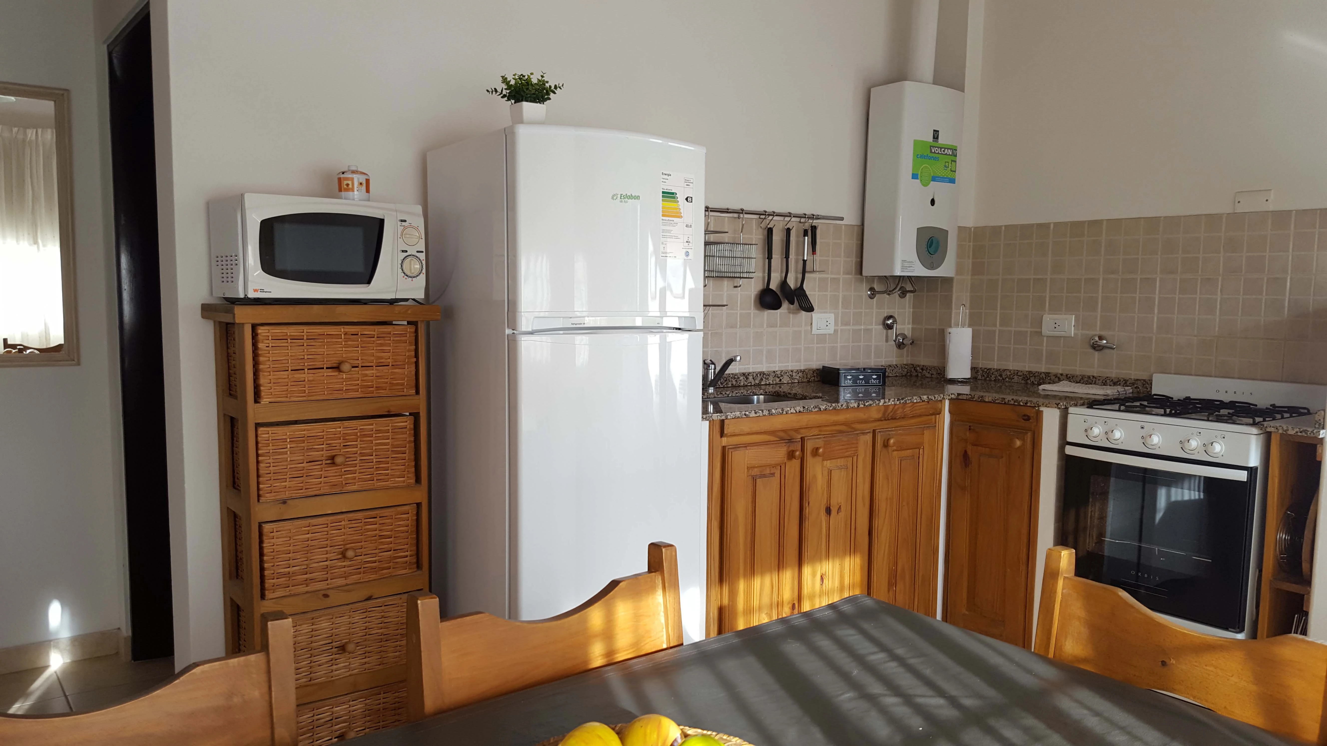 ◦ Cocina de cuatro hornallas, con horno. Vajilla completa